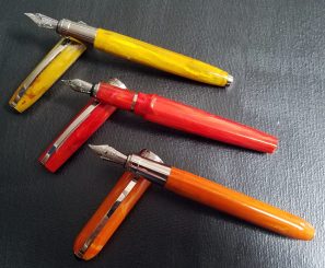 From that chart you can see that the three pens are roughly the same size and weight. There’s nothing surprising about this, and most pens that aren’t described as pocket pens or oversized pens are probably roughly in this range, but as this is a new design and a new material–this specific acrylic–it’s worth noting how it sizes up to similar pens.